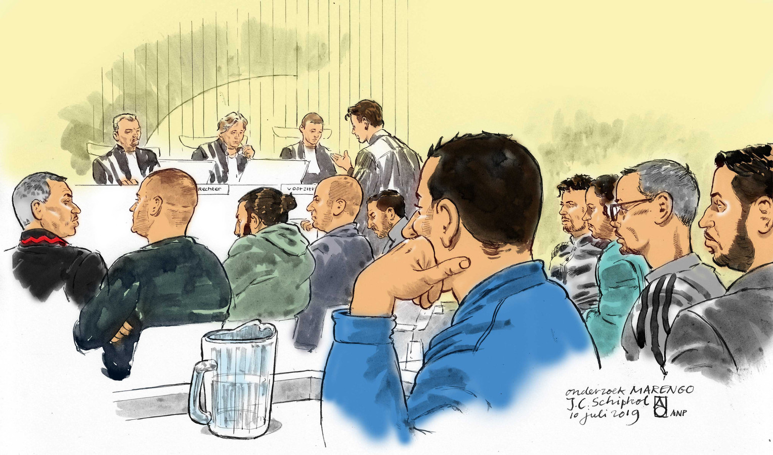 Nabil b marengo. Give a remarkable picture. Reporter Saskia Belleman is present in the court of Amsterdam. In de zaak Marengo staan 17 verdachten terecht voor verschillende moorden en pogingen tot moord.